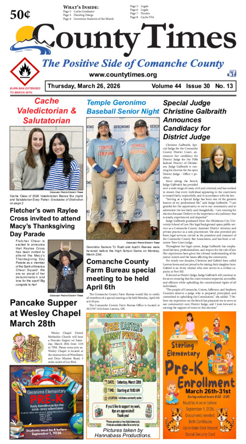 Christine Galbraith, Special Judge for the Comanche County District Court, announces her...